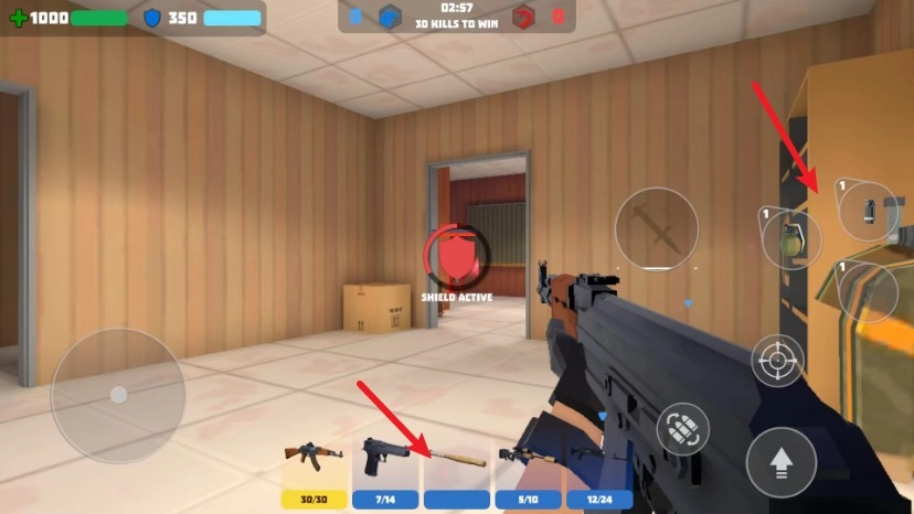 5. 手雷造成范围伤害,长按投掷按钮调整力度和角度,应对群体敌人。