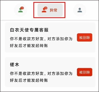 假转账法进入好友转账页面,查看昵称后是否显示真实姓名。出现姓名表示关系正常。