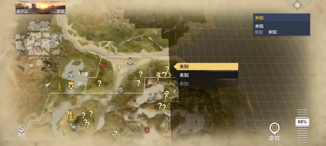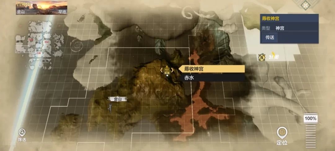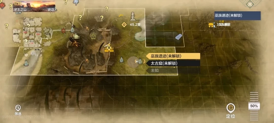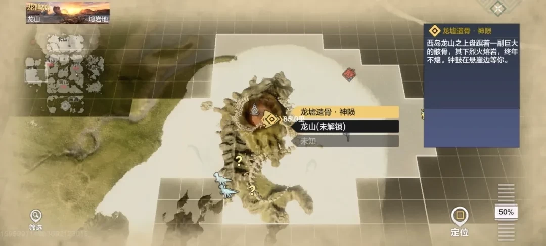 ● 【山海拓元】中是不同区域(南海、东岛、西岛、北山、大荒)的引导玩法,完成可获得各种养成资源,同时还显示了各个区域的主要玩法、推荐等级等信息。