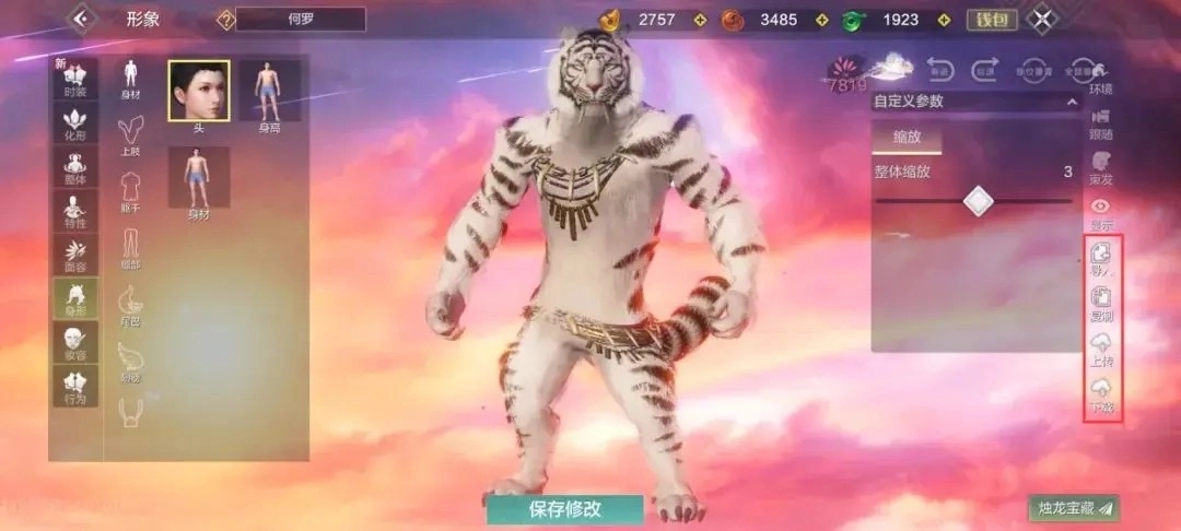 注意,导入捏形数据需要自身体型(种族、性别、年龄)与数据对应体型一致;捏形数据则是直接替换,对此无要求,如果其中有自身没有的部件,可调整后再保存。