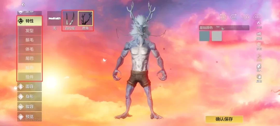 Tips:特性部件为装饰部件,在使用其他种族的角色形象时可以使用。如,使用人类种族时,可搭配昆豸的翅膀、麟兽的鹿角等,打造更个性化的形象。