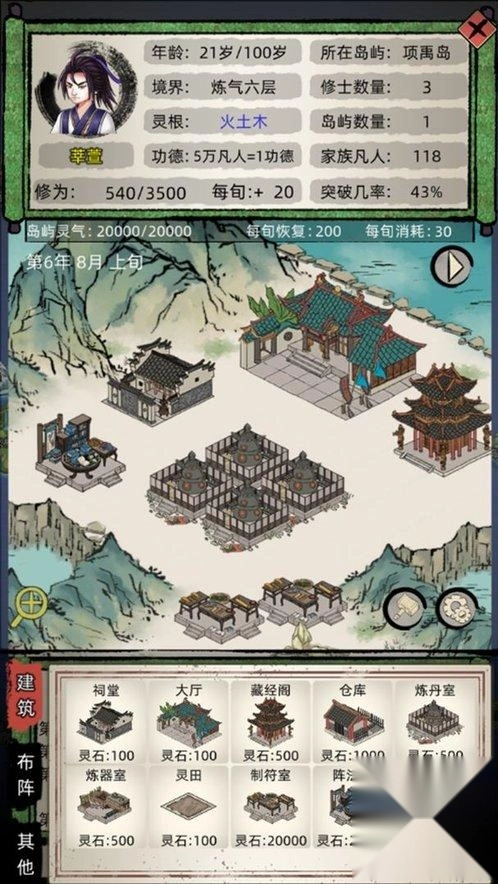 4、突破选择灵脉充沛岛屿,提前准备丹药法宝。弟子突破分自主与辅助两种,后者成功率更高。
