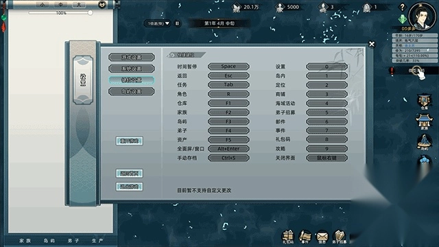 4、ESC键查看游戏设置与岛屿详情