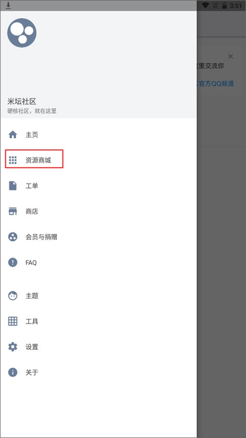 1、登录账号后,点击左上角三横图标进入资源商城。