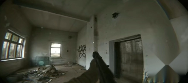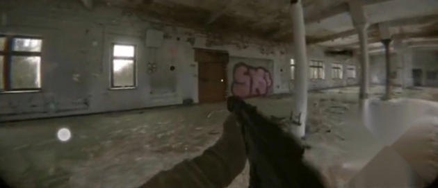 随身记录仪视角,模拟战士肩扛摄像头移动。