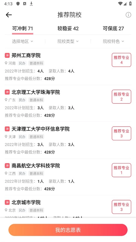 v1.1.8版本:新增分数推荐学校、专属志愿定制、院校对比功能。