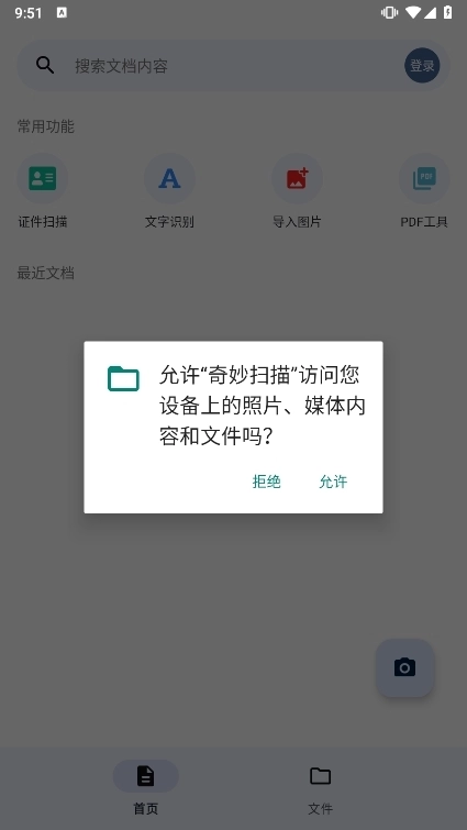 选择功能如拍照扫描、文字识别或证件扫描。