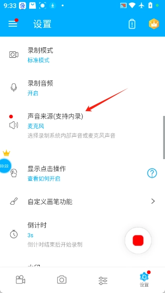7、开启录制模式并启用扬声器内录功能录制声音。