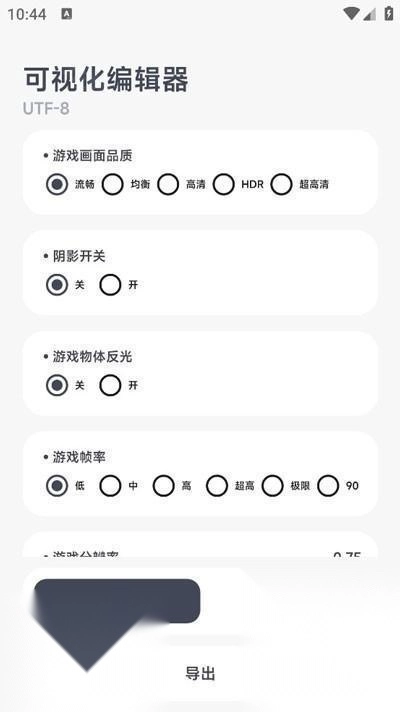 轻松一键操作解锁画质选项,安卓和iOS设备均无需root或越狱,安全稳定。详细代码参数介绍让玩家快速掌握调整方法,优化游戏视觉。自动识别画质设置,支持自定义帧率如30帧/秒、60帧/秒或90帧/秒,平衡性能与效果。智能匹配硬件配置,降低手机功耗,延长续航时间。多款热门游戏兼容,界面简洁易用,软件体积小不占资源。