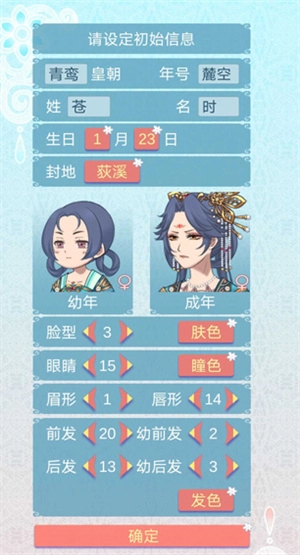一、创建角色:取名后整个皇室使用该姓,生日避免设为1.1(无法领压岁钱)、2.29或不存日期(年龄不增),每世可重设;