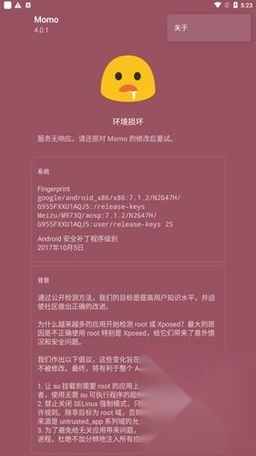 momo检测工具专注于识别手机root状态和Xposed框架安装,提供详细环境分析。用户可通过它监控设备运行状况,发现潜在风险如调试模式开启或分区异常。软件显示硬件参数如CPU温度,辅助优化性能,但部分功能需手动配置,如排除列表设置不当可能影响银行应用使用。界面简洁,检测速度快,但老旧设备兼容性有限,高负载下报告生成可能延迟。