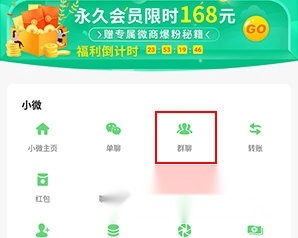 启动刷圈精灵APP,点击主界面“群聊”选项。