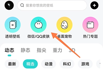 2、动态壁纸设置:点击动态壁纸板块,精选/游戏/风景分类自由选用