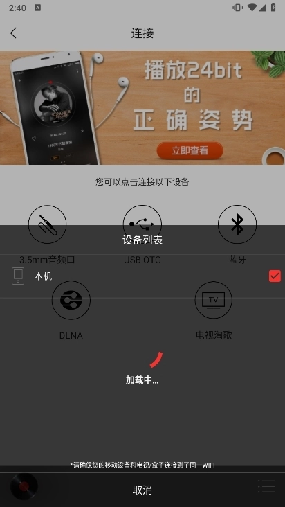 4. 成功配对后返回播放界面,音乐将通过外接设备输出