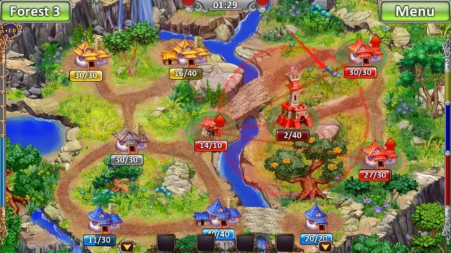 核心操作包括:攻击时先点己方位置再指目标区域;补给基地需点击防御塔后选择资源建筑;随着进程解锁特色技能,如空袭可改变战局。玩家需升级兵营、城堡等五类建筑强化部队,对抗多个AI敌人,并通过金币系统提升战力。三个难度递增的关卡要求精妙排布设施,积累经验解锁新内容。