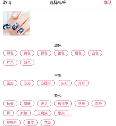 添加颜色、甲型和款式标签,编写描述后确认发布。