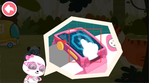 4、按照设备提示操作开启互动,点击音乐播放器可听儿歌,或点左上角熊猫头像探索推荐游戏和趣味百科。