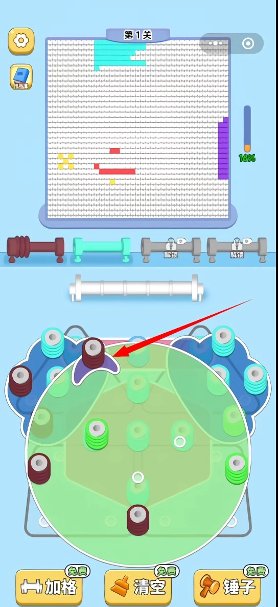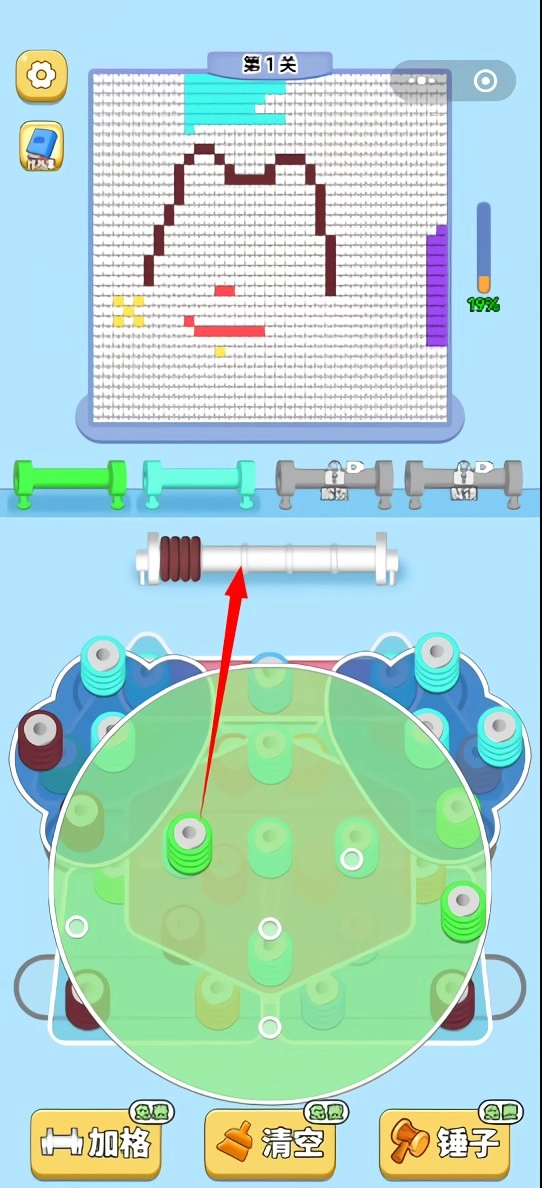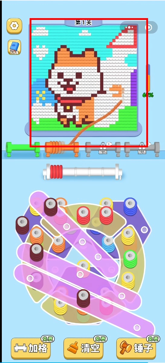 2、缠满毛线的工具及时触发填充,延迟会影响拼图进度和奖励累积