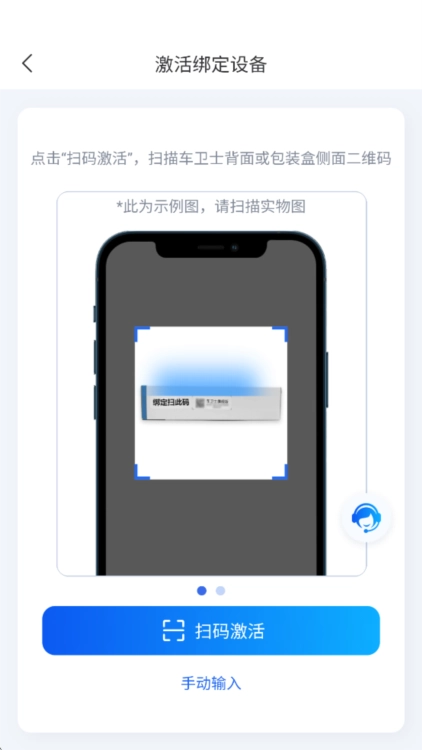 2、手动扫描车卫士二维码或输入设备条形码,即可成功绑定车辆。