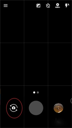 3、进入相机后是黑屏状态,点击左下角的切换到前置摄像头,切换后点击左上角的三。