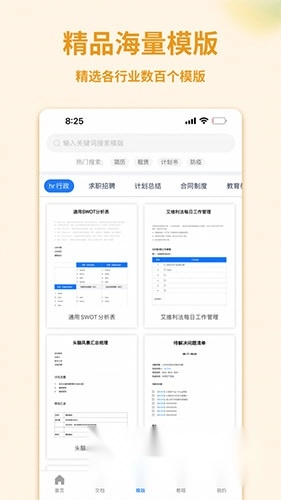 6. 模板应用:提供财务、人事、合同等模板,免费下载使用。