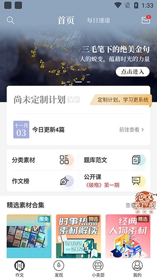 海量时事素材和人物故事实时更新,每日按中高考主题分类推送,减少搜索时间。
