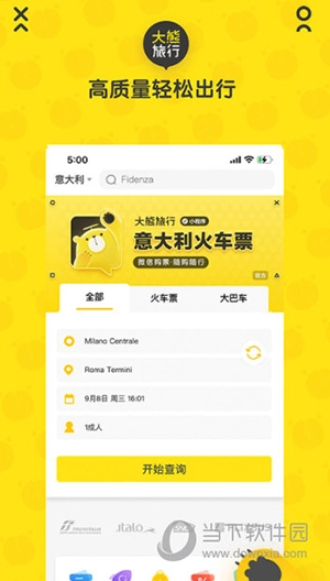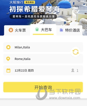 1、启动大熊旅行APP,首页点击"火车票"或"大巴车"进入票务页面,选择"开始查询";