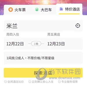 1、进入应用首页,在特惠专区点击"探索酒店";