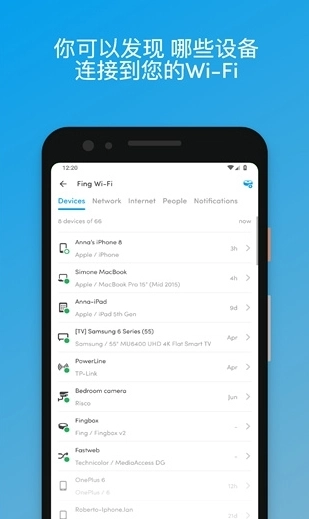 2. 启动应用:打开fing,自动检测并显示连接设备。
