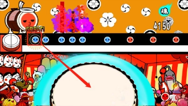1. 核心玩法围绕模拟击鼓展开,玩家需精准把握节奏时机与敲击力度。鼓面中央对应红色音符,鼓边区域对应蓝色音符,还原真实太鼓演奏体验。