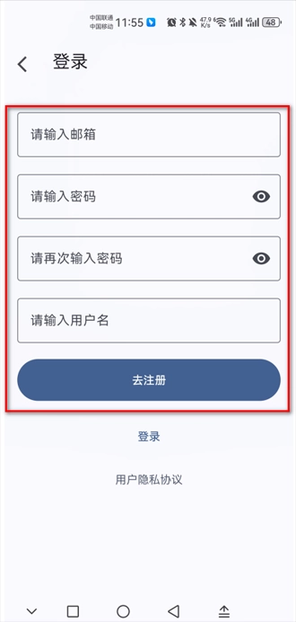 1、账户注册:首次启动需邮箱注册,三步完成账户创建