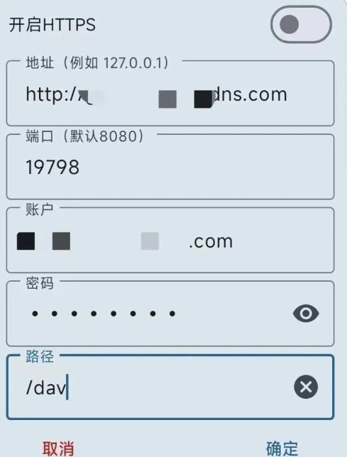 WebDAV设置:重点填写路径参数(推荐/dav、/ 或留空)