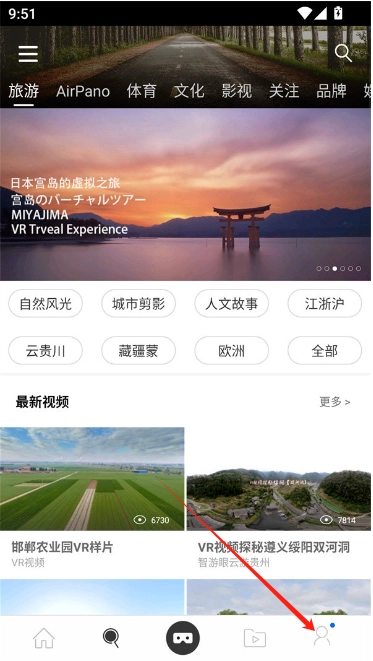 1、启动UtoVR应用,首页精选推荐栏目展示各类VR视频资源