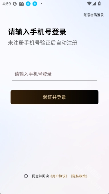 1. 下载应用后启动,勾选协议并点击开始按钮