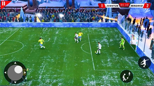 1、左手虚拟摇杆控制球员移动,在5v5街头赛场展开快节奏攻防。