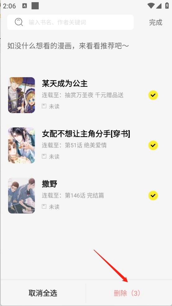 3、根据需要勾选漫画,执行删除操作。