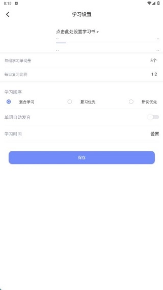 2. 自定义每日背诵数量和单词书类型。