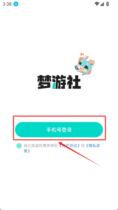 - 下载安装梦游社app,打开后选择手机号注册。