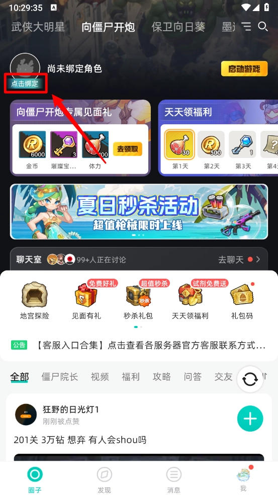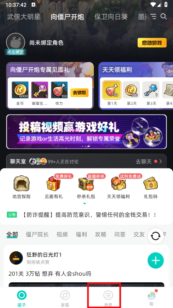 - 登录后点击“圈子”栏目,查看游戏福利如礼包和兑换码。