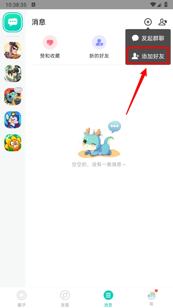 2、在消息页点右上角“+”号。