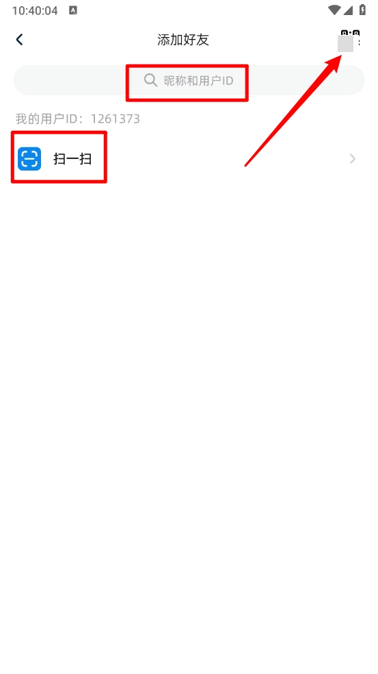 4、输入昵称或用户id添加,或扫码二维码完成。