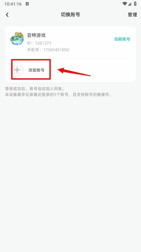 3、添加账号切换,设备记录最近5个账号。