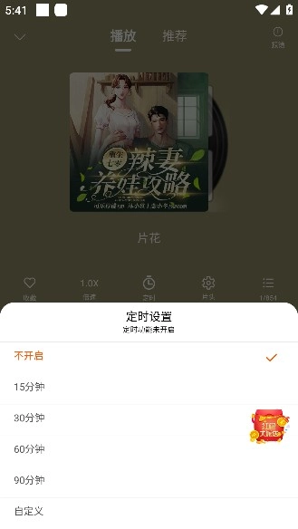 5、设置菜单提供定时关闭选项,支持自定义时长或选择预设时间