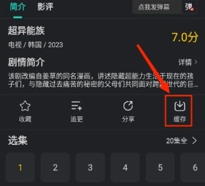 1、在应用中定位想下载的影视剧,进入播放页面,例如超异能族。