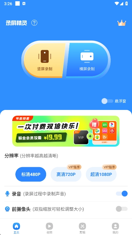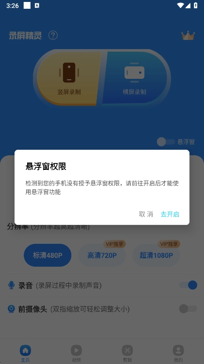 4. 悬浮窗控制:录制中实时调整参数,支持摇动手机快速停止