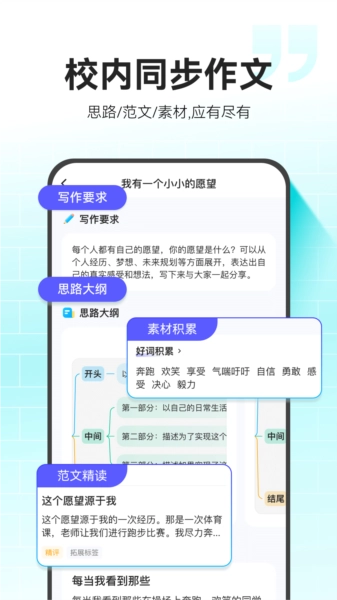 同步作文:收集各类教材版本的同步作文,每篇经过严格筛选,配备详细解析,包括结构、技巧和语言表达点评。