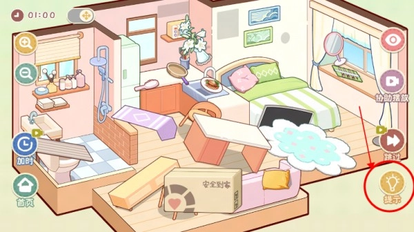 3.选定具体关卡进入任务场景,如"搬家日记"主题房间