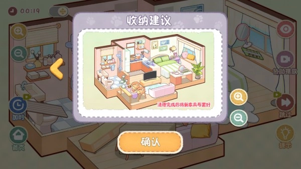 4.运用右下角工具栏提供的清洁用具与收纳道具进行整理