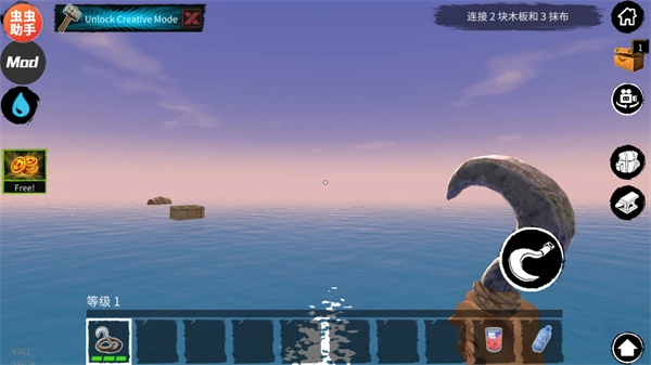 木筏求生联机版是一款海洋生存模拟游戏,玩家在广阔海域中依靠简陋木筏展开冒险。游戏采用3D引擎开发,画面真实,操作简单易上手。核心玩法包括资源收集、工具制作和生存挑战。玩家需管理饥渴值,应对鲨鱼威胁,并利用钩子打捞漂浮物如木头、塑料和树叶。初期重点建造蒸馏器、烤架和鱼竿,确保基本生存。随着进度,可以扩建木筏,探索岛屿,发现更多材料。联机模式支持多人合作,共同抵御鲨鱼或争夺资源,但资源分布随机且稀缺,可能导致前期生存压力大。鲨鱼攻击频繁,需及时加固木筏边缘。游戏强调策略性,例如使用鲨鱼饵引开威胁,或优先制造强化船板。手机版优化触屏操作,适合移动设备体验高画质海洋环境。