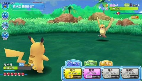 【撒娇大作战】皮卡丘的撒娇技能能降低对手物攻等级,两个回合后对方实力大减,这个招数非常有用,建议保留。